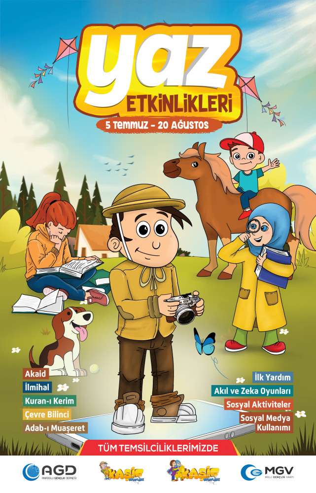AGD’nin Yaz Etkinlikleri, Kur’an-ı Kerim, ilmihal, akaid, adabı muaşeret, peygamberler tarihi, örnek şahsiyetler, çevre bilinci, ilk yardım, akıl ve zeka oyunları, robotik kodlama, sosyal medya kullanımı gibi derslerin yanı sıra sosyal, kültürel ve teknolojik faaliyetlerin de içerisinde olduğu, öğrencilerin eğlenirken öğrendiği ve tatil dönemini verimli geçirdiği bir etkinlik dönemi olarak öne çıkıyor.