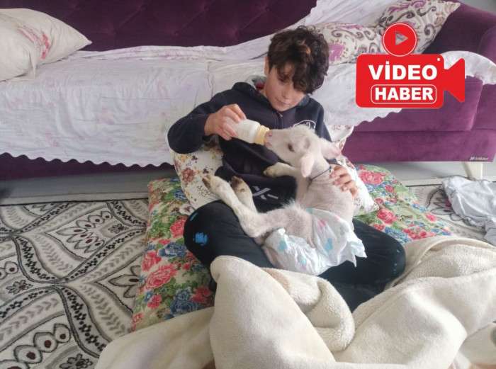 Ölen koyunun yavrusuna gözü gibi baktığını söyleyen Küllahçıoğlu, "Ölen koyunun yavrusunun ismini 'Paşa' koyduk. Paşa'yı evde biberonla besliyoruz. Oğlum Paşa'yı yatağına alıyor, uyuyor" diye konuştu.