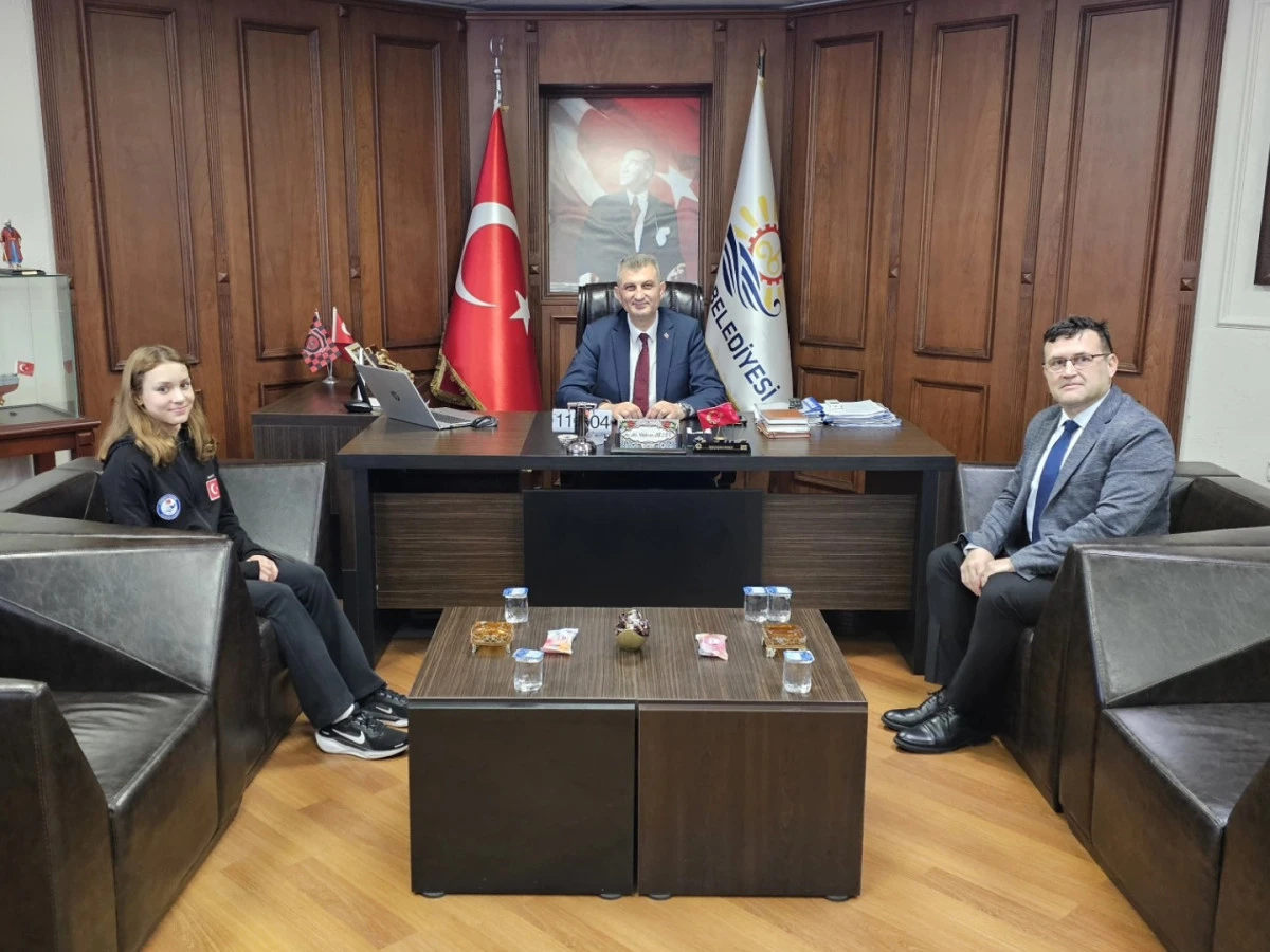 Uluslararası arenada kazandığı başarıyla ay-yıldızlı bayrağı kürsünün en üst basamağına taşıyan Alara Gökalp, yurda dönüşünde babası Burak Gökalp ile birlikte Gölcük Belediye Başkanı Ali Yıldırım’ı ziyaret etti. Başarılı sporcuyu makamında ağırlayan Başkan Sezer, genç yüzücünün elde ettiği bu büyük başarıdan duydukları memnuniyeti dile getirdi.