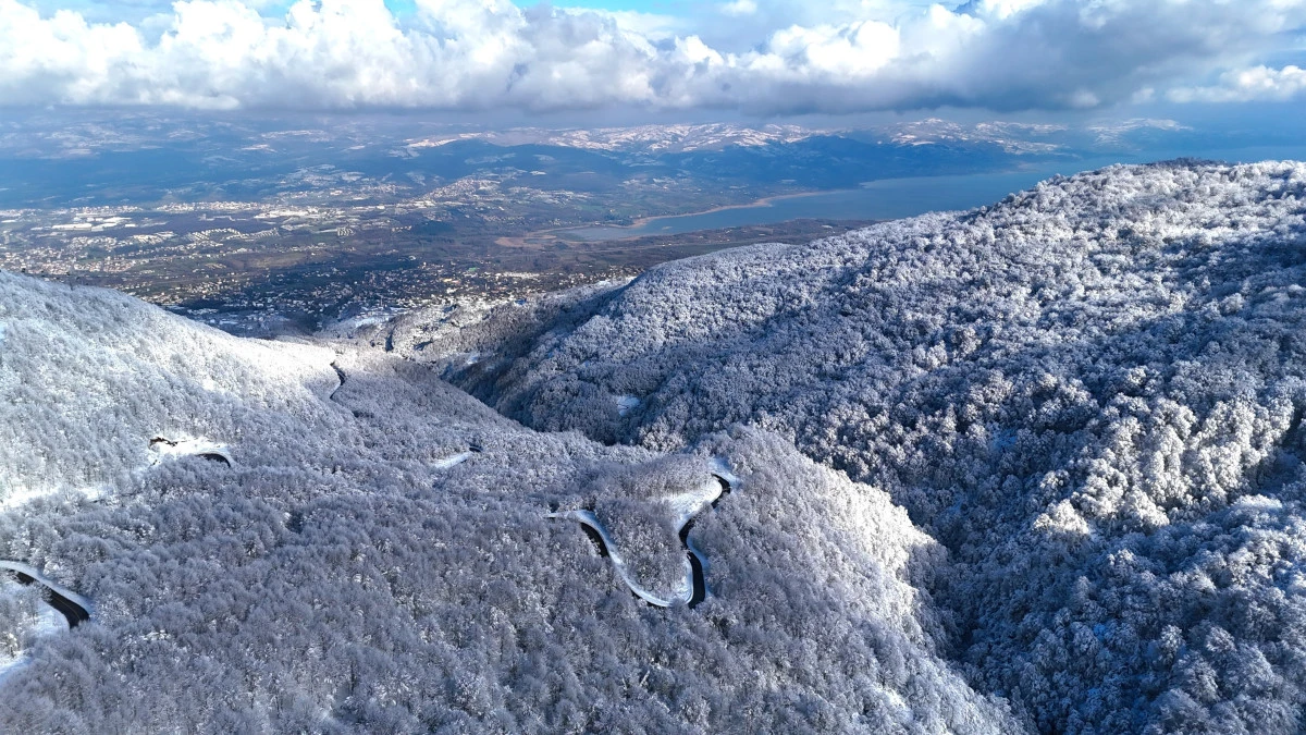 Yaklaşık 10 gündür aralıklarla devam eden kar yağışı Kartepe'yi adeta bem beyaz yaptı. Kar kalınlığının 50 santimi geçtiği zirvede drone ile çekilen görüntüler eşsiz manzarayı gözler önüne serdi. Samanlı dağlarının beyaz gelinliği, Sapanca'nın maviliği ve Kartepe ilçesinin yeşili tek karede buluştu. Ortaya ise seyrine doyumsuz manzaralar çıktı. Hergün yüzlerce kişinin ziyaret ettiği Kartepe'nin eşsiz manzarasını turistler fotoğraflamayı ihmal etmedi.