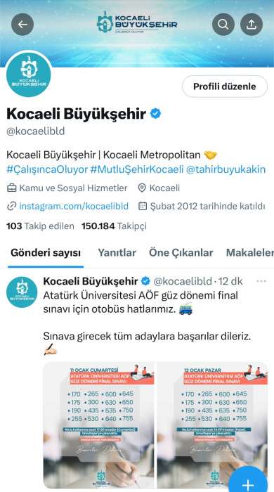 Sosyal medyayı etkili bir iletişim aracı olarak kullanan Kocaeli Büyükşehir Belediyesi, toplumsal farkındalık yaratan içerikleri ve görsel açıdan zengin paylaşımlarıyla dikkat çekiyor. Çevre, şehircilik, etkinlik duyuruları ve belediye hizmetlerine yönelik bilgilendirici içerikler, geniş kitlelerin ilgisini topladı. Özellikle video ve drone çekimleri gibi yenilikçi içerikler, hem Kocaeli hem de diğer illerden takipçilerin beğenisini kazandı.