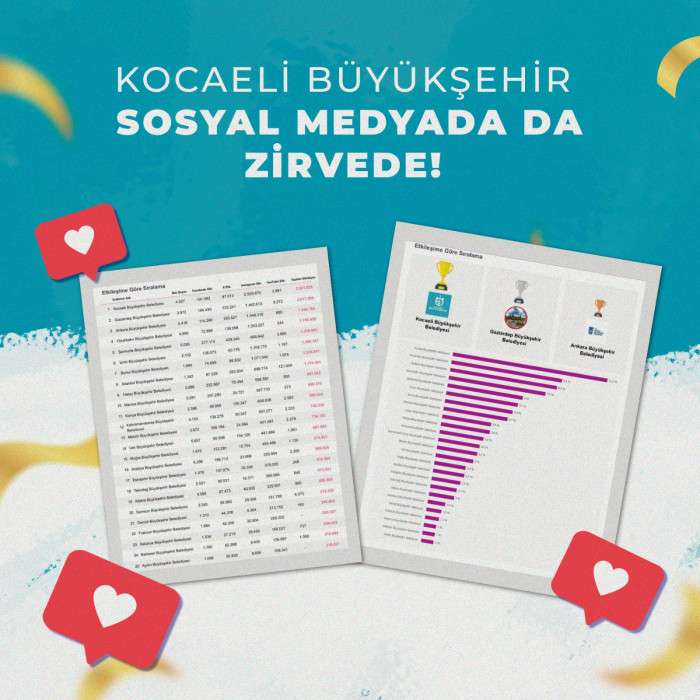 Kocaeli Büyükşehir Belediyesi, sosyal medyadaki etkili iletişim stratejisiyle 2024 yılında Türkiye genelindeki büyükşehir belediyeleri arasında birinci sıraya yerleşti.