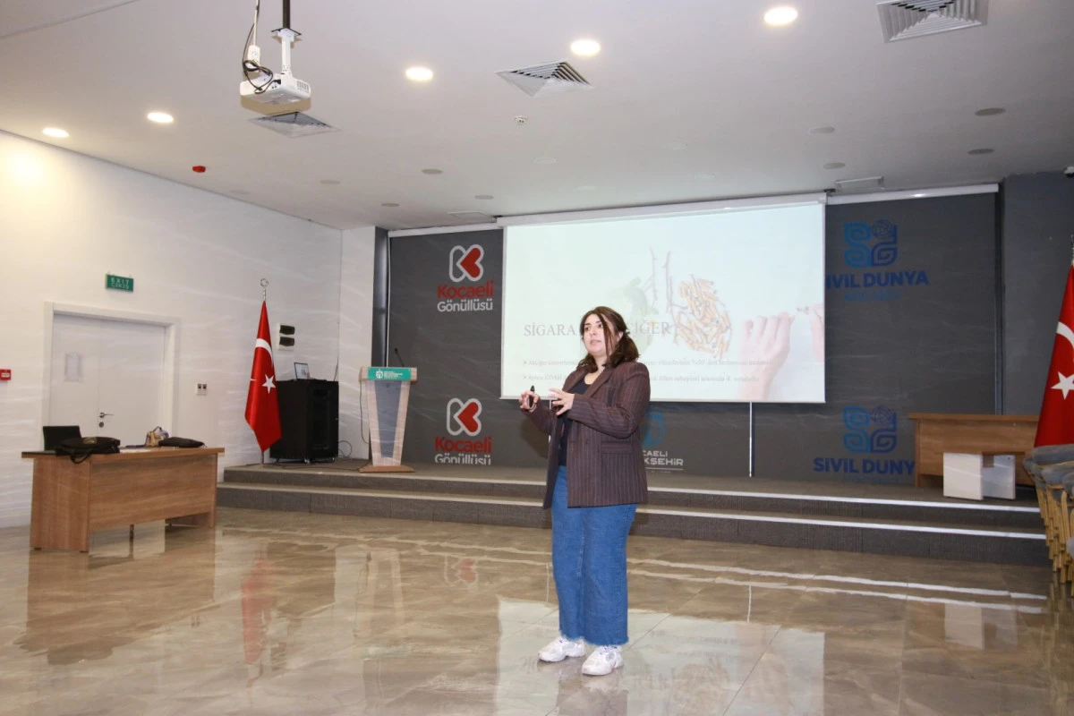 İzmit Sivil Toplum Merkezi’nde gerçekleştirilen eğitime İl Sağlık Müdürlüğü’nden Uzman Doktor Onay Merve Pekel katıldı. Eğitimde; sigaranın zararları, bırakma sürecinde yaşanan zorluklar ve baş etme yöntemleri ile tedavi süreçleri hakkında detaylı bilgi verildi. Bağımlılık türlerinden biri olan tütün bağımlılığıyla mücadele kapsamında düzenlenen program, personelin tütün bağımlılığından kurtulmasını hedefliyor.