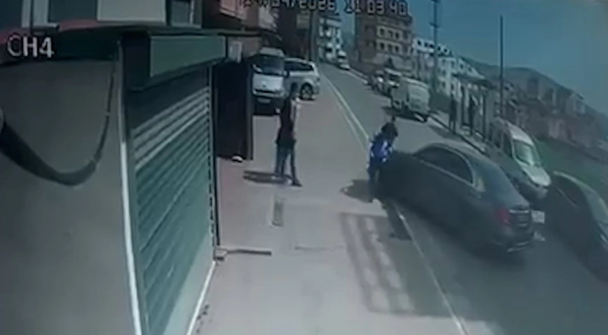Meydana gelen olay, bir iş yerinin güvenlik kamerası tarafından anbean kaydedildi. Görüntülerde; motosikletlinin yol kenarında ilerlediği, karşı yönden gelen otomobilin aniden kaldırıma doğru yönelerek motosiklete şiddetle çarptığı, sürücünün yere savrulduğu anlar yer aldı. Farklı bir kamera açısından ise çarpmanın etkisiyle savrulan motosikletin açık olan bir oto kuaför dükkanından içeri sürüklendiği görüldü.