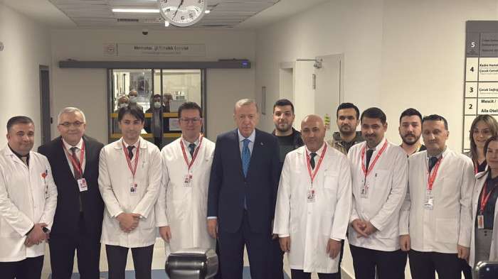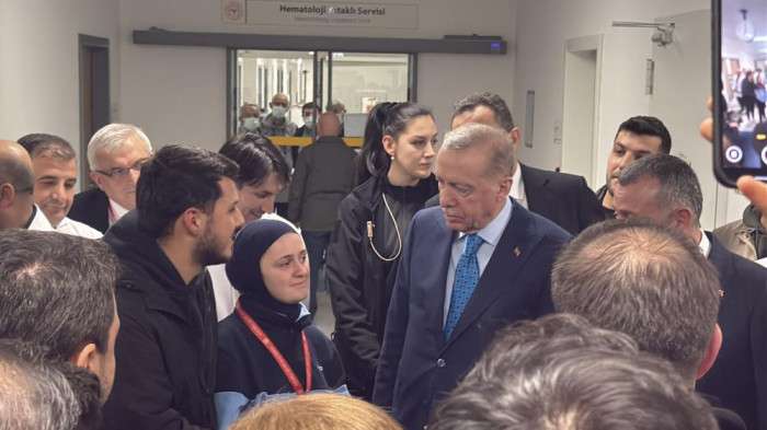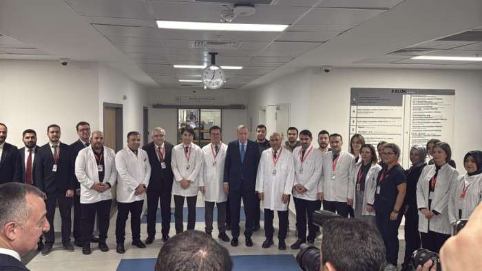 Erdoğan, tıbbi onkoloji yataklı servisini ziyaret ederek burada tedavi gören hastalarla bir araya geldi. Hastalarla sohbet eden Cumhurbaşkanı Erdoğan, geçmiş olsun dileklerini iletti, ziyareti sırasında sağlık personeliyle de bir araya geldi. Ziyaretin ardından doktorlar, hasta yakınları ve hastalarla hatıra fotoğrafı çektiren Cumhurbaşkanı Erdoğan, moral verdi. (İHA)