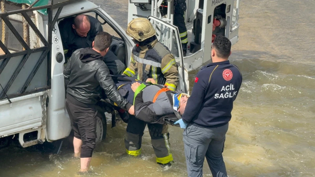 (İHA) - Olay, saat 14.00 sıralarında Yahya Kaptan Mahallesi Bestekar Amir Ateş Caddesi'nde meydana geldi. M.E. (43) idaresindeki kamyonet, sürücüsünün direksiyon hakimiyetini kaybetmesi sonucu demir korkuluklara çarptı. Çarpmanın etkisiyle korkuluklar yerinden sökülürken, araç dereye düştü. Çevredekilerin 112 Acil Çağrı Merkezi'ne ihbarı üzerine olay yerine itfaiye, sağlık ve polis ekipleri sevk edildi. Suya inen itfaiye eri, araç içerisinde bilinci kapalı halde bulunan sürücü M.E.'ye dakikalarca kalp masajı yaparak adeta zamanla yarıştı. Ekiplerin yoğun çabası sonucu itfaiye merdiveni yardımıyla bulunduğu yerden çıkarılan M.E., sağlık görevlilerine teslim edildi. Olay yerindeki ilk müdahalesinin ardından ambulansla Kocaeli Şehir Hastanesi'ne kaldırılan sürücünün hayati tehlikesinin devam ettiği öğrenildi.