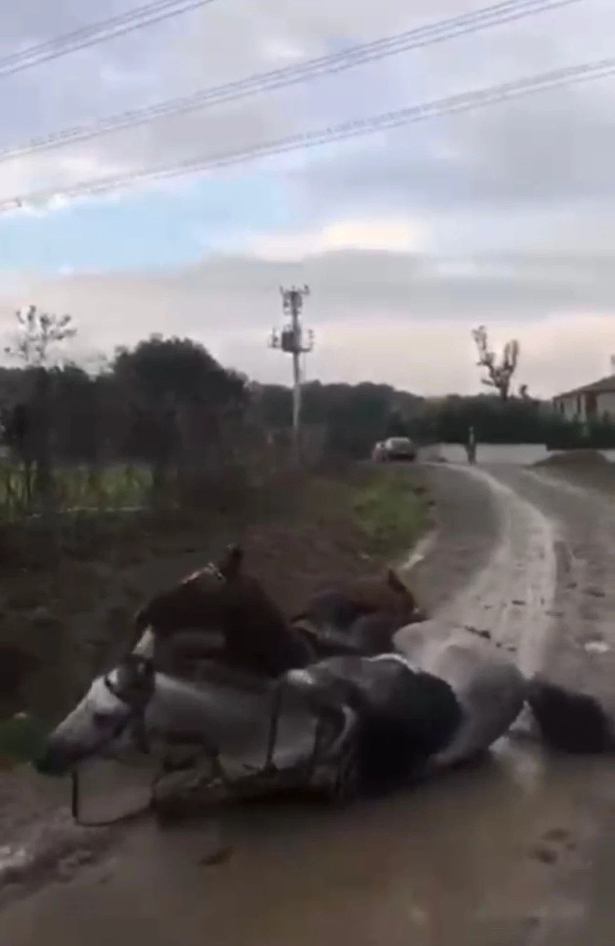 Edinilen bilgiye göre, Cumaköy Mahallesi Uludere Caddesi'nde seyir halindeki iki at, elektrik akımına kapıldı. Atlardan biri kurtulurken, diğeri ise uzun süre akıma kapılarak telef oldu. Olayın, bölgedeki bir su deposuna çekilen kaçak elektrik hattının yer altından geçen bölümünde meydana gelen sızıntıdan kaynaklandığı iddia edildi. İhbar üzerine olay yerine jandarma ve Sakarya Elektrik Dağıtım AŞ (SEDAŞ) ekipleri sevk edildi. Ekipler, bölgedeki enerjiyi keserek inceleme yaptı ve olayla ilgili rapor tuttu. Olay anı ise cep telefonu kamerasına yansıdı. Üzücü olayı kayda alan vatandaşın, "Ölüyor mu? Ölüyor vallahi" dediği duyuldu.