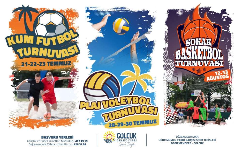 Gölcük Belediyesi'nin yaz etkinlikleri kapsamında 21 Temmuz-13 Ağustos tarihleri arasında düzenleyeceği; Kum Futbol, Sokak Basketbolu ve Plaj Voleybolu Turnuvalarında gençler yeteneklerini sergileyecek.