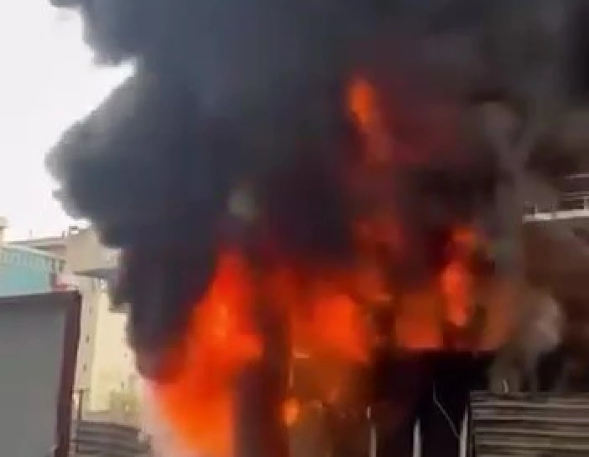 İNŞAAT ALANINDAKİ İŞÇİ KONTEYNERİ ALEV ALEV YANDI