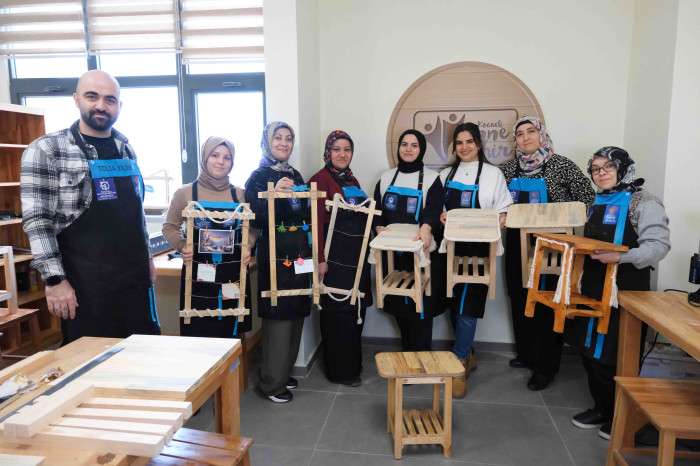 Büyükşehir Belediyesi bünyesinde düzenlenen ahşap atölyesi, kadınların el becerilerini geliştirmelerine imkân sunuyor.