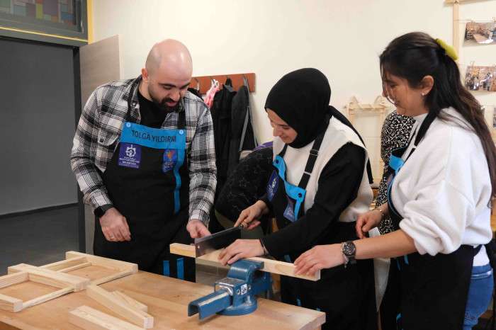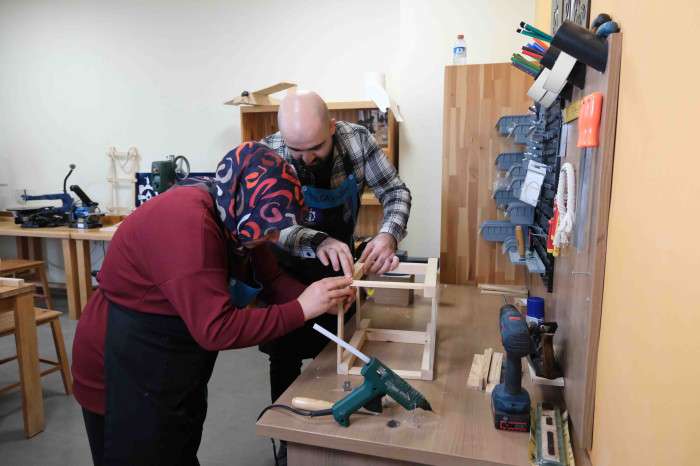 Kadınlar ahşabın büyülü dünyasında hem teknikleri öğreniyor hem el becerilerini geliştiriyor