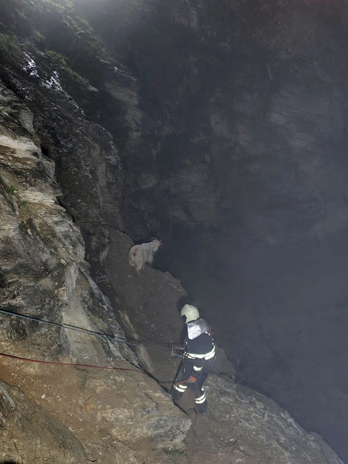 Bölgeye hızla ulaşan itfaiye ekipleri, yağışlı hava ve ıslak zemin nedeniyle kayganlaşan tehlikeli arazide adeta cansiparane kurtarma çalışması başlattı. Metrelerce yükseklikteki kayalıklara özel halat sistemleri kurarak inen itfaiye erleri, zorlu hava ve fiziki şartlara rağmen titiz bir operasyon yürüttü. Ekiplerin zorlu arazi şartlarıyla mücadelesi yaklaşık 3 saat sürdü. Başarıyla tamamlanan operasyon sonucunda, kayalıklarda mahsur kalan 16 keçi ve oğlak burunları dahi kanamadan kurtarılarak sahibine sağ salim teslim edildi.