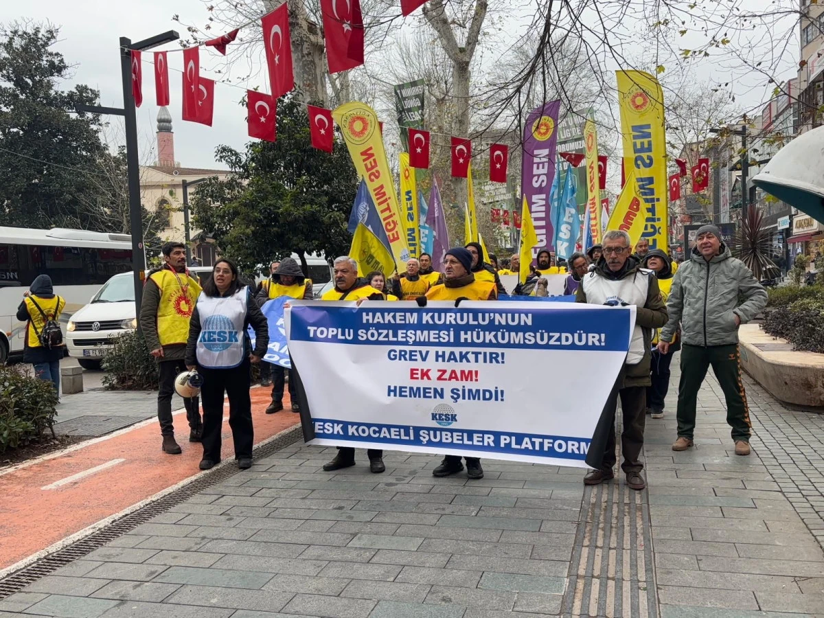 KESK’e bağlı sendikalar Eğitim Sen, TÜM BEL-SEN ve Büro Emekçileri Sendikası (BES), insanca yaşam talebiyle Kocaeli’de iş bırakma eylemi gerçekleştirdi. KESK Kocaeli Şubeler Platformu öncülüğünde düzenlenen eylem kapsamında sendika üyeleri İzmit Vergi Dairesi önünde bir araya gelerek basın açıklaması yaptı. Açıklamada, artan enflasyon, eriyen maaşlar ve adaletsiz gelir dağılımına dikkat çekilirken, “geçinemiyoruz” vurgusu öne çıktı.