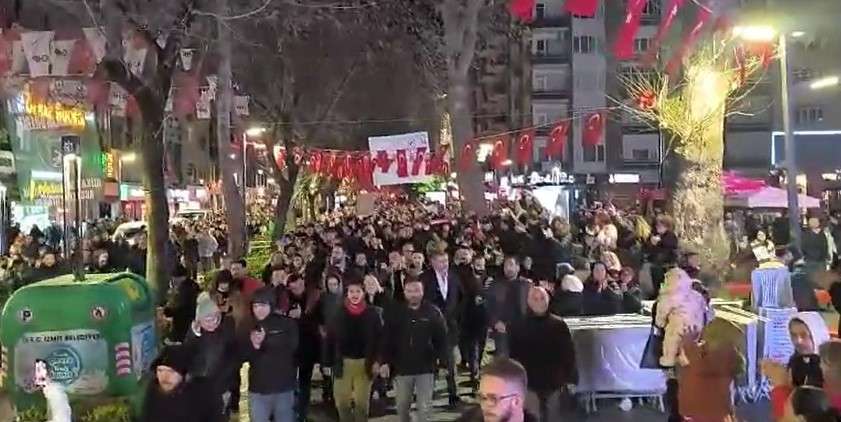 İzmit Belediyesi iftarının ardından toplanan kalabalık öğrencilere destek vermek için Sabri yalım parkı'ndan belediye işhanına doğru hareket etti. Öğrencileri destek vermek isteyen CHP'liler ve vatandaşlar sloganlar eşliğinde belediye iş hanına yürüyor.