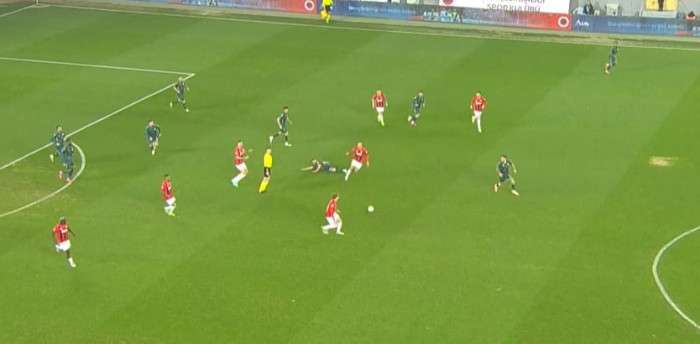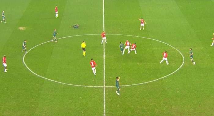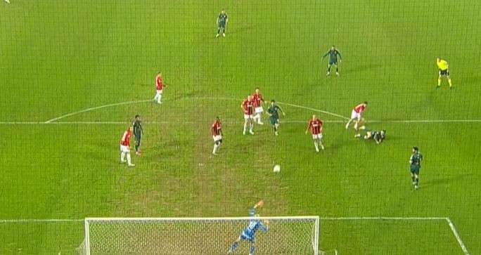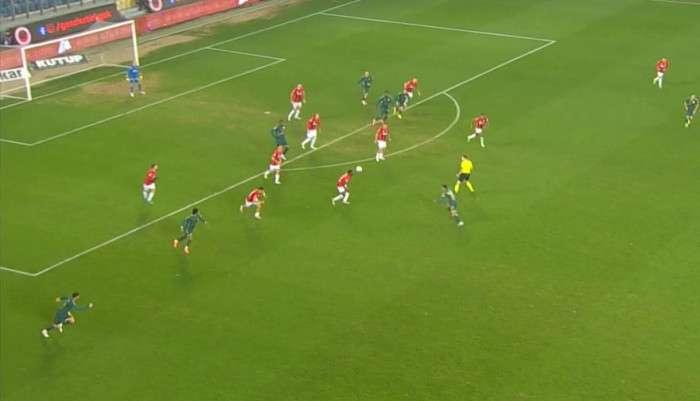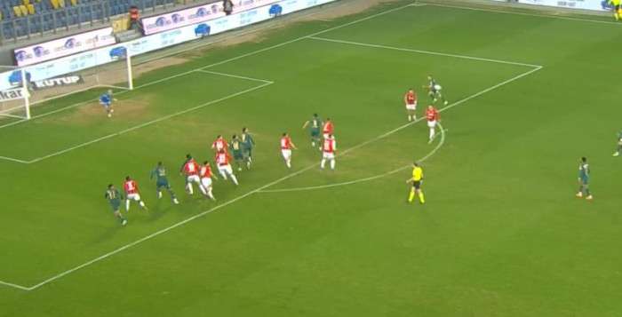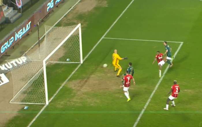 21' Sol kanattan gelişen gençler birliği akınında Honousek sekin penaltı noktasına doğru ortaladığı topu Djitte önüne almak isterken hemen yanındaki Pedrinho dans etti bu pozisyonda ev sahibi sahibi ekip elle oynama gerekçesiyle penaltı bekledi ancak oyun devam etti