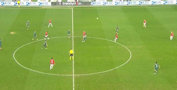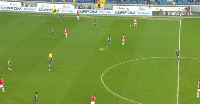 10’ Cihat ceza sahasına yakın olan Mendes’i gördü. Mendes de topu alır almaz uzaktan şut çekti ancak topun sürati az kaldı, kaleci başarılı bir şekilde topu kontrol etti.