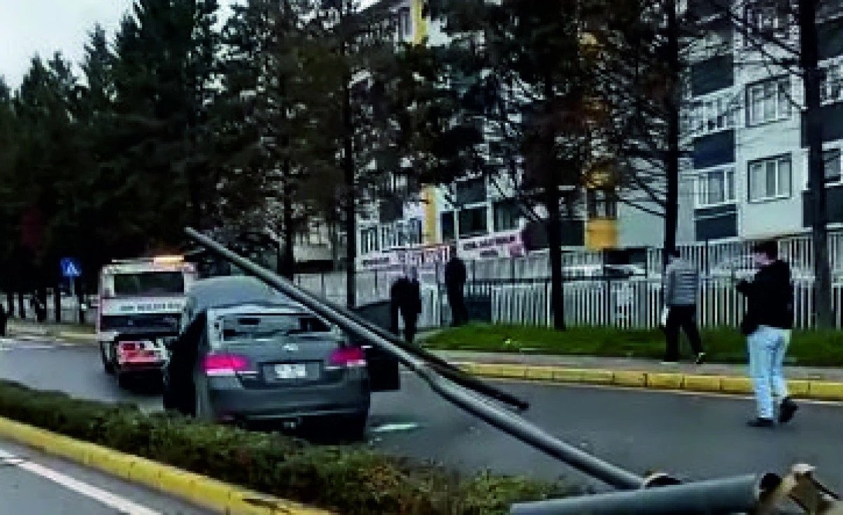 Edinilen bilgiye göe seyir halindeki bir otomobil, kontrolden çıkarak orta refüjdeki aydınlatma direğine çarptı. Çarpmanın şiddetiyle yerinden sökülen dev metal direk, aracın üzerine devrilerek büyük çapta maddi hasara yol açtı. Kaza sonrası araç kullanılamaz hale geldi.