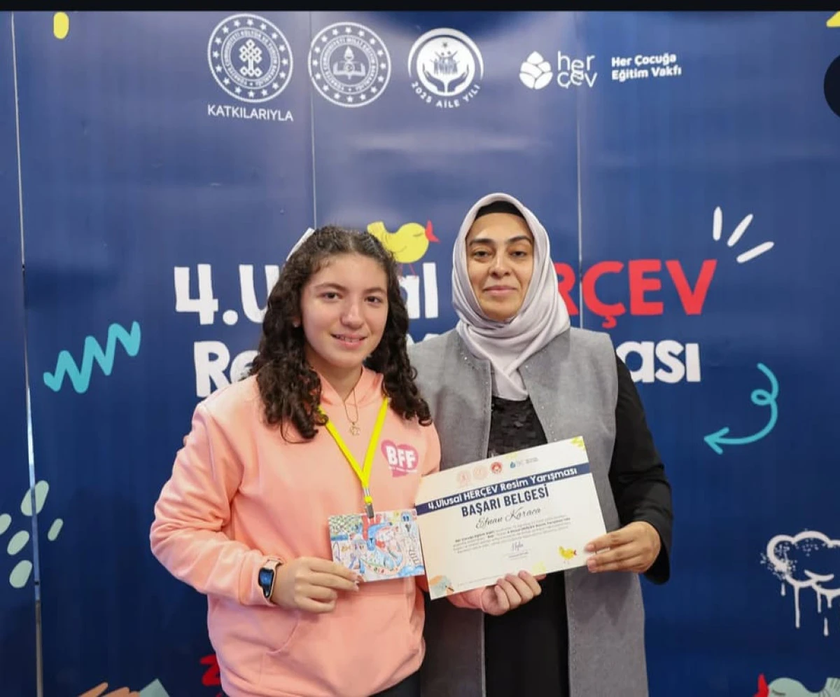 Körfezim Eğitim Kurumları öğrencimiz Efnan Karaca, Her Çocuğa Eğitim Vakfı tarafından düzenlenen “Aile” temalı resim yarışmasında, ortaokul kategorisinde Türkiye 1.’si olarak büyük bir gurur yaşattı.