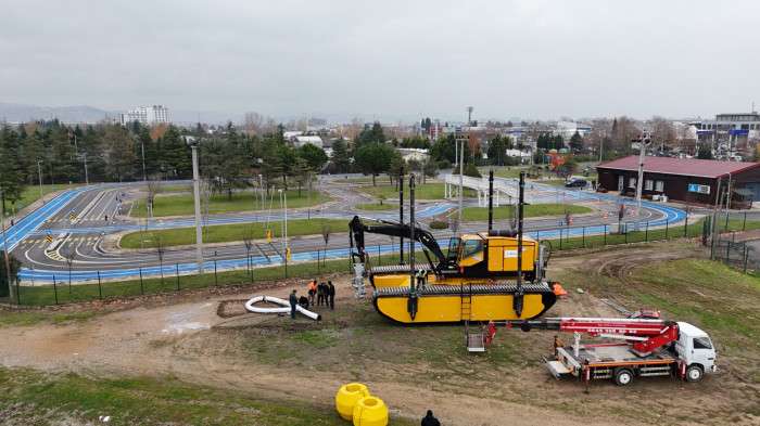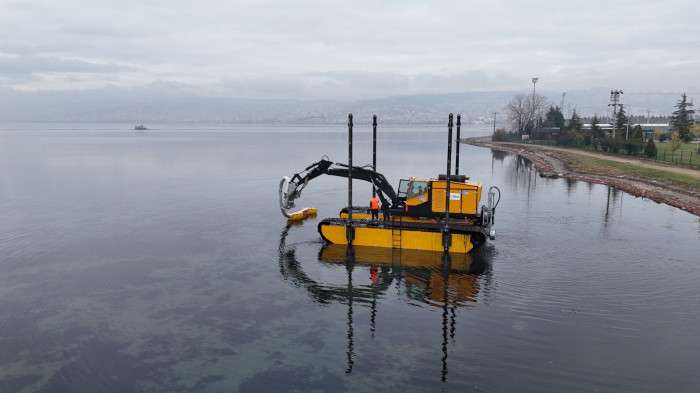 İzmit Körfezi Doğu Baseni Dip Çamurunun Temizlenmesi Projesi’nde” 2. etap çalışmalarında kullanılmak üzere sığ bölgelerdeki çamurun daha etkili ve hızlı bir şekilde temizlenmesi amacıyla yüksek kapasiteli bir amfibi araç getirildi. Amfibi araç, Kocaeli Büyükşehir Belediyesi’nin Körfez’in doğal güzelliklerine bir an önce kavuşmak için yaptığı çalışmalara büyük katkı sağlayacak.