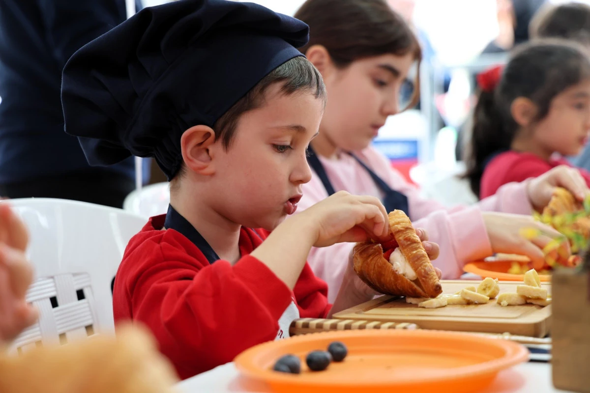 Atölyede minik katılımcılar, kruvasanlarını adeta küçük birer sanat eserine dönüştürüyor. Çikolata sosları, meyveler ve farklı süslemelerle hazırlanan ürünler, çocukların hayal gücünü yansıtan renkli tablolara dönüşüyor. Ortaya çıkan kruvasanlar sadece süslenmekle kalmıyor; çocuklar tarafından büyük bir keyifle tüketiliyor. Böylece etkinlik, hem üretme hem de paylaşma duygusunu aynı anda yaşatıyor.