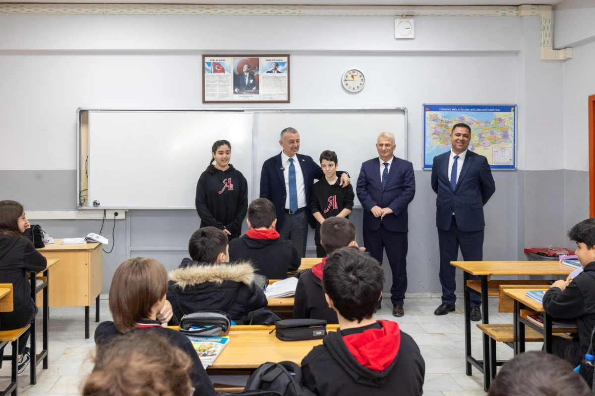 Okul kapısında öğrencilerin sevgi gösterileri ile karşılanan Başkan Büyükakın, gördüğü ilgi karşısında son derece mutlu oldu. Sıcak ve samimi anların yaşandığı karşılamanın ardından Başkan’a çiçek takdim eden Berat Ege Sarı, “Başkanım sizi burada görmekten çok mutluyuz” diyerek teşekkür etti. Büyükakın da, “Başkanlık hayırlı uğurlu olsun” karşılığını verdi.
