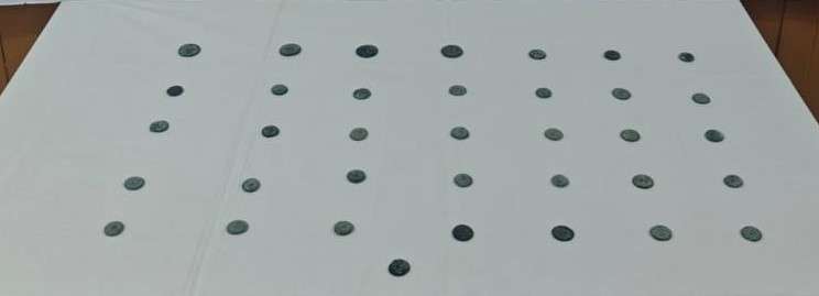 Yapılan aramada şüphelinin üzerinden 36 sikke ele geçirildi. Malzemelere el konulurken, şüpheli hakkında adli işlem başlatıldı. (İHA)