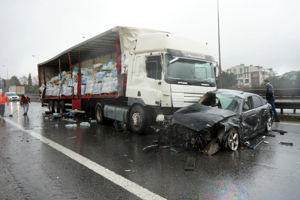 TEM'DE 6 ARAÇ BİRBİRİNE GİRDİ: TIRDA YÜKLÜ SULAR YOLA SAÇILDI
